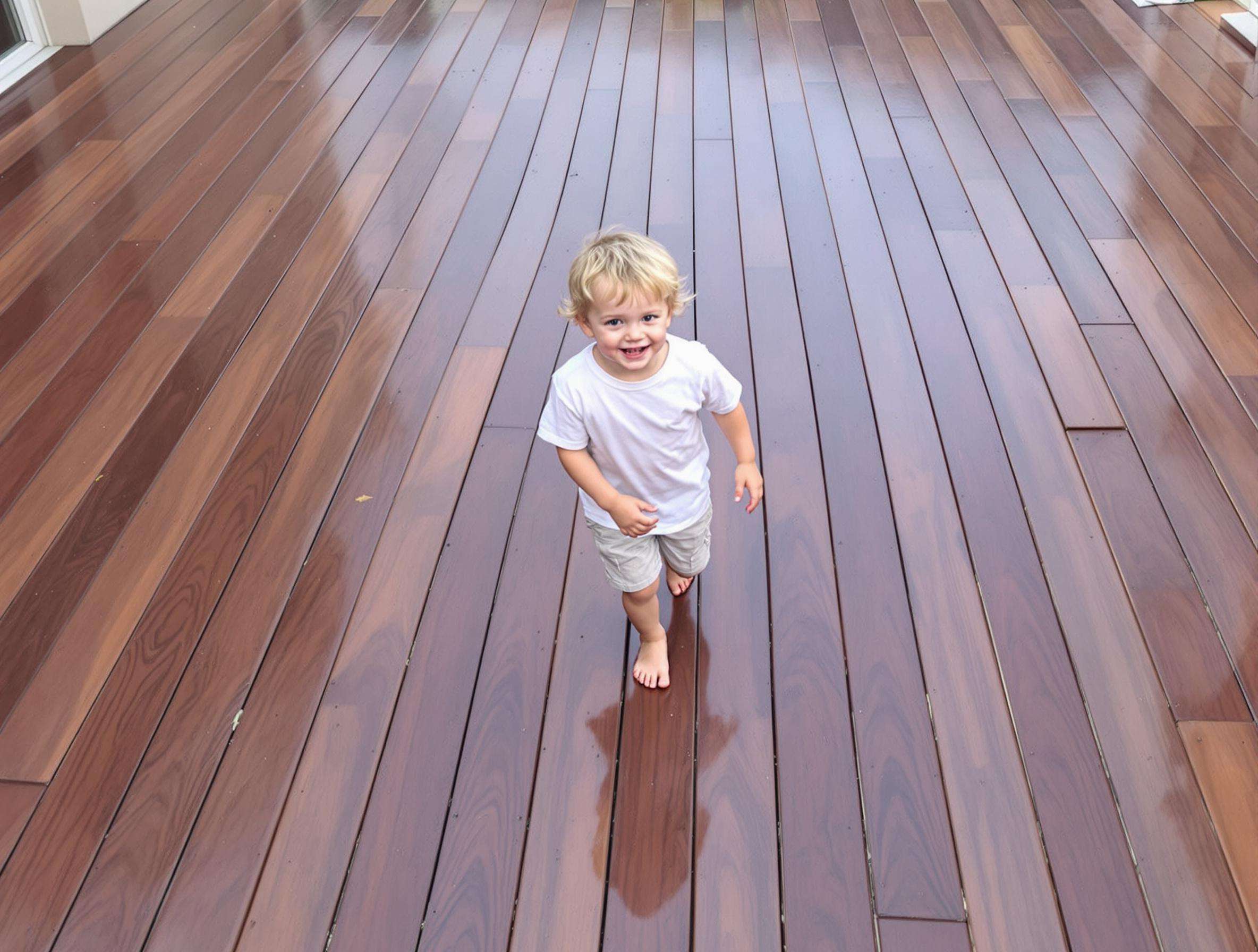 Si votre platelage est glissant, il est impératif de le laver pour évacuer la couche de mousse et lichen qui prolifère à une température au-dessus de 10°C. Une surface lisse bois propre ne glisse pas même mouillée !